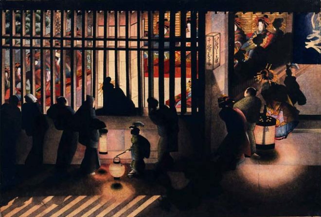 この「吉原格子先之図」で最も印象深いのはなんといっても光と陰の効果でしょう。